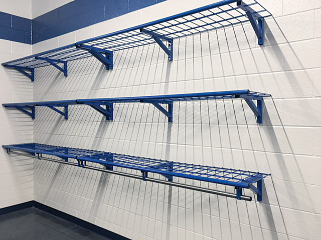 The heavy-duty shelves feature tubular steel framing with gusseted support wires, and boast a weight capacity of 150 lbs. per shelf. Ideal for storing bags, bins or any other athletic equipment. Wall mount shelving offers optional stainless steel HangBar for added organization.