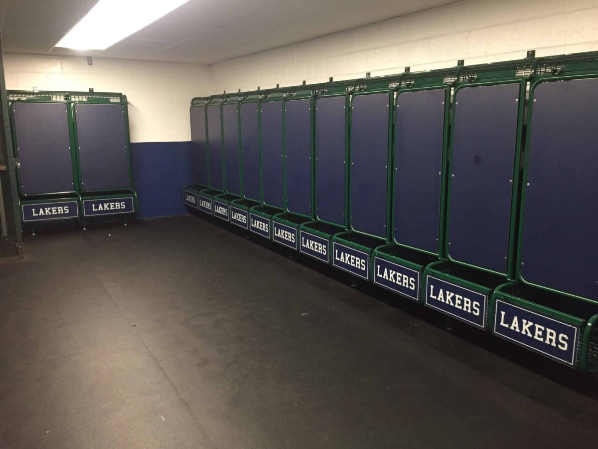 GearGrids Wall Mount GridIron Team Lockers are placed in Concordia University Falcons locker room! With GearGrid's Team Lockers, each include an an integrated seat with storage and locking capabilities. Athletes are able to load equipment without having to stand on seats, which prevents potential injury to athletes and damage to seats. Request a Free Quote For Your Facility